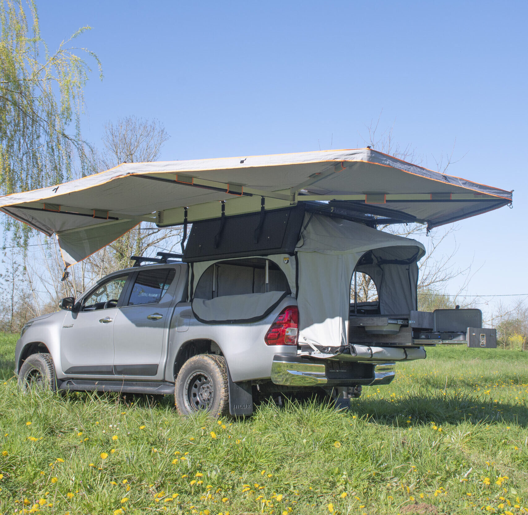 Transforme ton pick-up en véritable espace de vie. Robuste, léger et autonome, le Pack Weekender est conçu pour partir à l’aventure en toute simplicité.